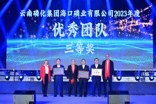 1月19日晚,2023年海口磷業年會在云磷體育館隆重舉行。海口磷業總經理納達夫.特納,海口磷業黨委書記、行政副總理蔡彬亭致詞,各團隊領導匯報2023年工作情況,年會對榮獲2023 年度 “優秀團隊”、“十佳價值創造之星”、“十佳超越之星”的集體和個人進行表彰。海口磷業合唱團、各團隊員工表演文藝節目。海口磷業特肥銷售副總經理林巖,運行副總經理納志輝,紀委書記、工會主席何偉,財務副總經理刁敏、基礎肥銷售和業務發展副總經理施永輝、合資研發中心總經理、首席技術官Shimon等參加活動。